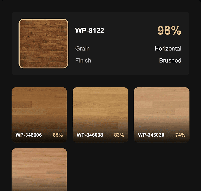 Instantly identify material scans, finish samples, and color profiles by visual similarity, eliminating side-by-side comparison across entire product catalogue.