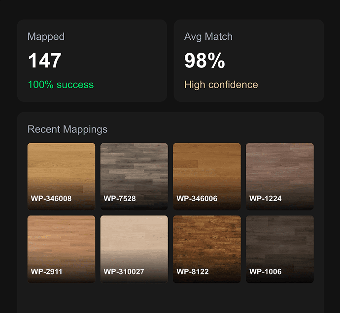 Automatically assemble, package, and deliver approved material scans and finish references from customer requests, mapping spreadsheets, PDFs, or text lists to your catalog at scale.